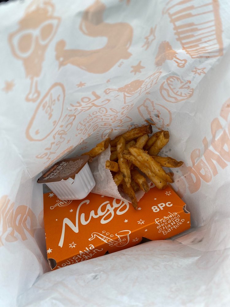 1 piece of our famous chicken tenders marinated in mouthwatering Louisiana herbs and seasonings then hand battered and breaded in our crunchy southern coating. Fried until golden brown. Includes a dipping sauce, GoGo squeeZApple Sauce, and an Apple Juice.